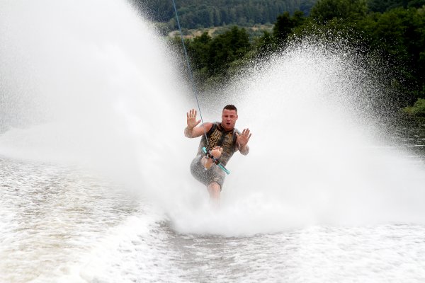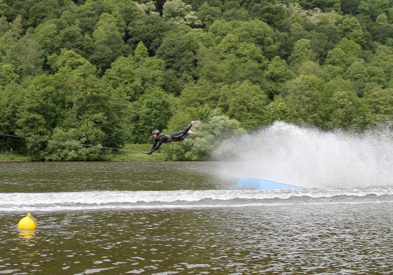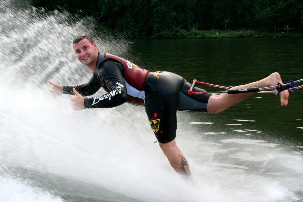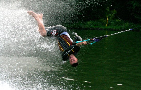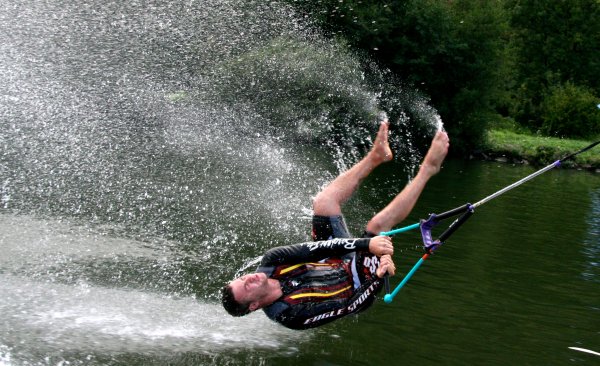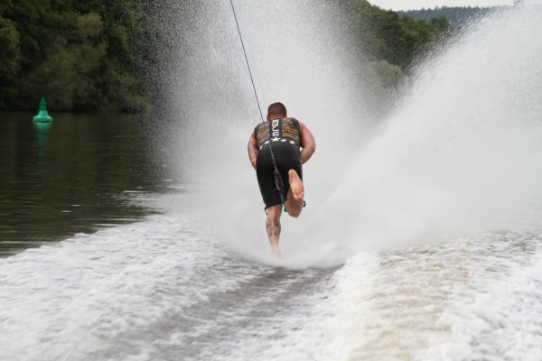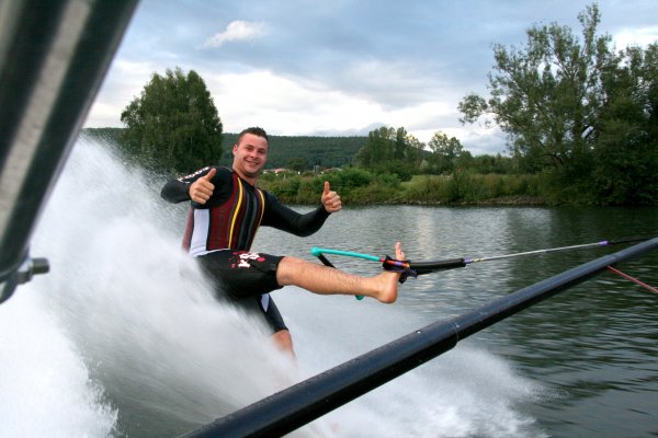Seit Freitag finden in Röllfeld, am Campingplatz Mainwiese, die deutschen und internationalen Meisterschaften im Barfuß Wasserski statt. Ausrichtender Verein ist der WSC Mainaschaff. Mitorganisator und Lokalmatador Stefan Weigand ist stolz, dass nach cirka 30 Jahren die Meisterschaften wieder einmal in seiner Heimatregion ausgetragen werden. Der 28-jährige Frankfurter Unternehmer sieht sich als halber Röllfelder. „Ich bin zwar gebürtiger Frankfurter, fühle mich aber als halber Röllfelder, da ich sehr viel Zeit dort verbringe.“ Die nicht ganz alltägliche Sportart ist ihm quasi in die Wiege gelegt worden. „Mein Vater war begeisterter Barfuß Wasserski-Läufer und seit ich acht Jahre alt bin, fröne ich ebenfalls dieser Sportart.“ Papa Jürgen Weigand hat es 1984 sogar ins Guinnessbuch der Rekorde mit einem Sprung von 14.80 Meter Weite geschafft. „Das war damals der Wahnsinn, denn vor soviel Jahren rasten die Sportler nicht mit 72 km/h übers Wasser, so wie wir jetzt“, erzählt Sohn Stefan voller Stolz.
