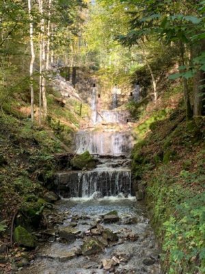 Schon der Weg bis zur ersten Rast am Berggasthof Galaun ist sehr schön. Vom Gasthof aus ist bereits die Riedersteinkapelle sichtbar. Es ist eine winzig kleine neugotische Kapelle, die hoch oben auf dem Felssporn Riederstein thront. Von dieser Kapelle aus hatten wir einen atemberaubenden Blick auf den Tegernsee und in das Tal der Weissach.