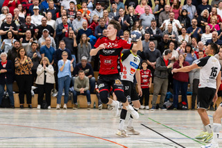 Schon gut fünf Minuten vor dem Abpfiff glich die RODAUSTROM Sportarena einem Tollhaus, keinen der gut 600 Anwesenden hielt es mehr auf den Sitzen. Denn was die beiden Teams im Topspiel den Zuschauern boten, war Handballsport vom Allerfeinsten. Knallharte Zweikämpfe, sehenswerte Treffer, spektakuläre Paraden und vor allem eine Heimmannschaft, die nie den Glauben an sich verlor und mit einem unwiderstehlichen Endspurt den Favoriten aus dem Saarland mit 34:32 (16:15 in die Knie zwang.
