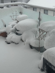 Auf dem Balkon hatte alles ein Häubchen
