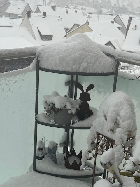 Auf dem Balkon hatte alles ein Häubchen
